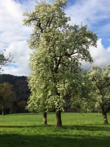 Les poiriers sont également des arbres fruitiers bien adaptés à une culture en altitude, par la rusticité de l’arbre et sa floraison généralement tardive (avril) et peu gélive. Comme les pommiers, les poiriers sont des arbres auto stériles pour la plupart. Il faut donc avoir plusieurs individus de variétés différentes dans le voisinage pour être sûr d’avoir des poires.