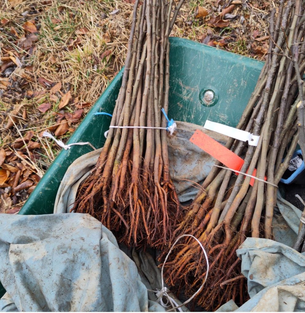 Pour aller encore plus loin dans cette optique, les portes greffes sont produits à la pépinière en allant chercher les graines dans le sauvage et/ou le local (merises, prunes, Sainte-Lucie, pépins de coing, pomme, kaki…). Les arbres hôtes pourront ainsi être sélectionnés en fonction de différents paramètres (vigueur, état sanitaire, résistante à la sécheresse, terrain d’implantation…) et ainsi permettre d’adapter au mieux le couple porte-greffe et greffon.
